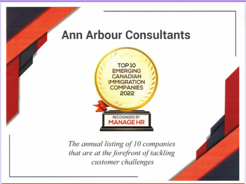 Ann Arbour was recognized as the "Top Emerging Canadian immigration Company 2022" by Manage HR.